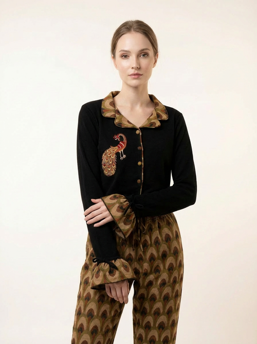 🖤 Ensemble Pyjama 3 Pièces Noir "Love" en Maille Torsadée & Côtelée